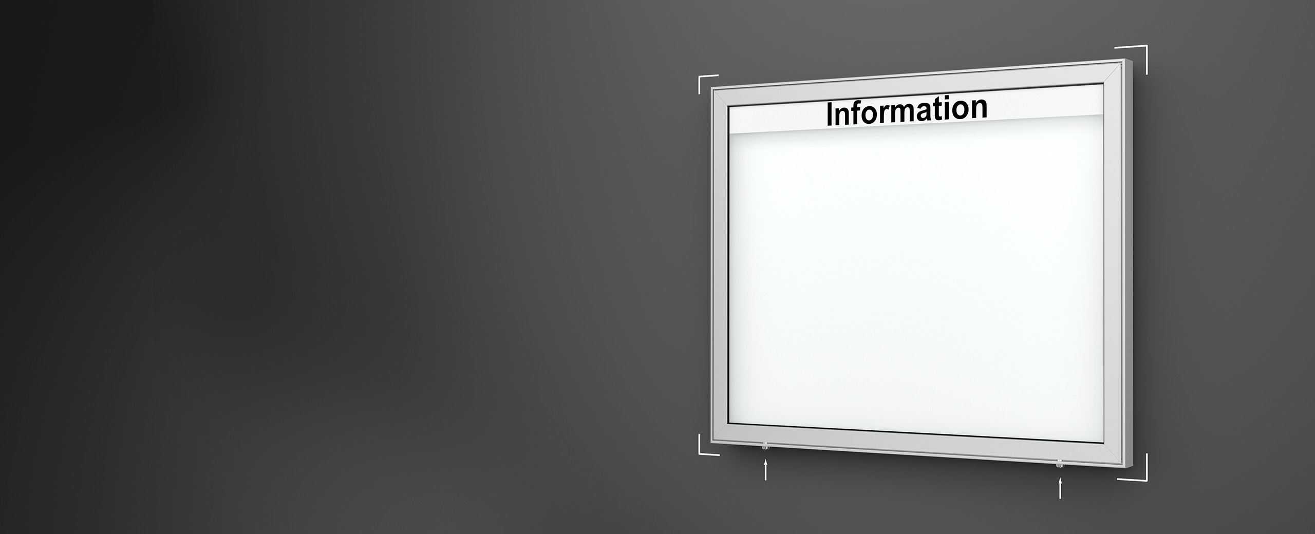 - Merkmale Schaukasten: abschliessbar, mit Schiebetüren, Brandschutz, Unfallschutz (gerundete Kanten), Wandmontage, magnetisch