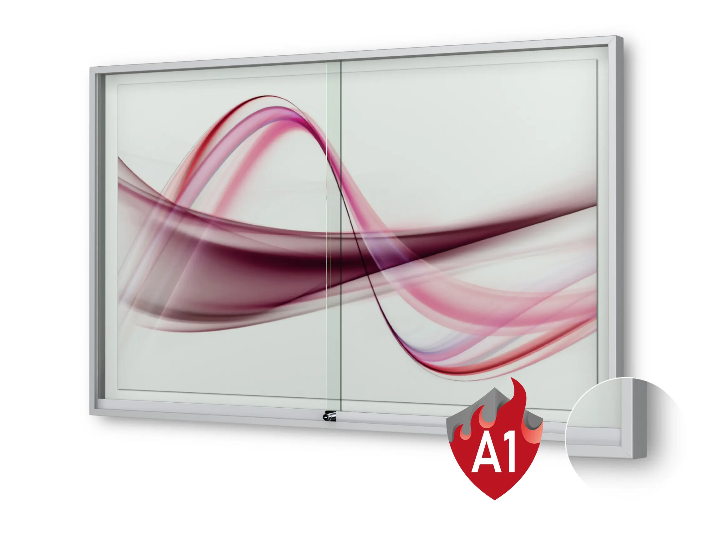 - Merkmale Schaukasten: abschliessbar, mit Schiebetüren, Brandschutz, Wandmontage, magnetisch