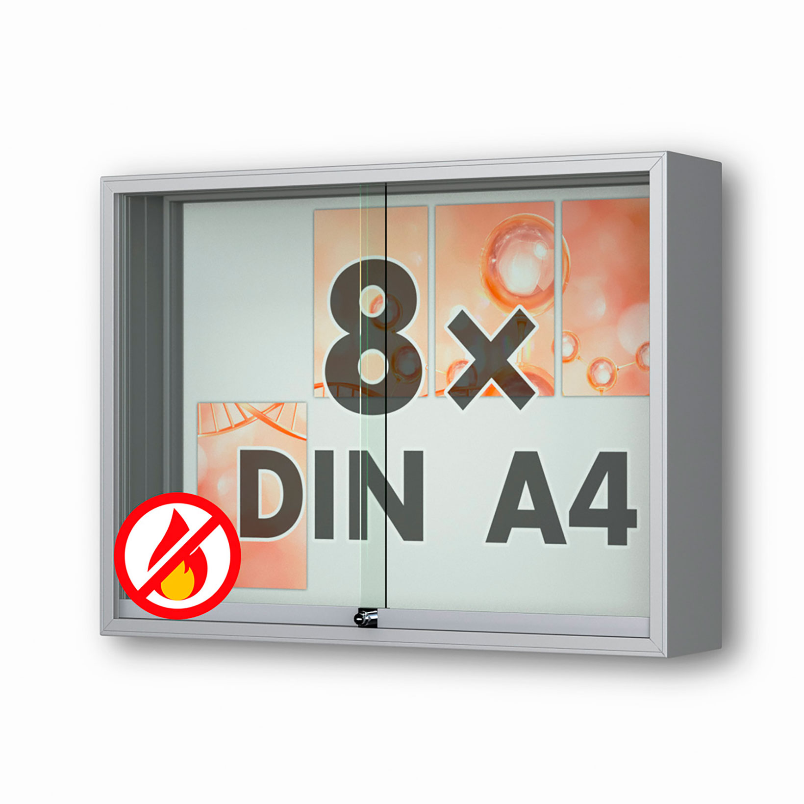 8 x DIN A4 Schaukasten Fortis mit Schiebetüren - 210 mm Bautiefe