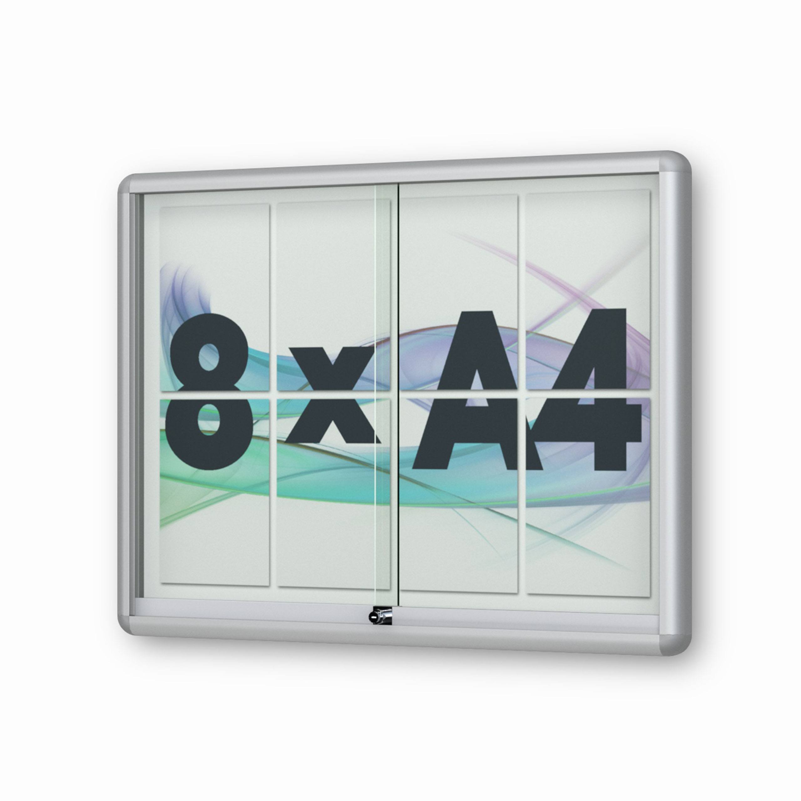 8 x DIN A4 Schaukasten Moveo - "die Schulvitrine" - mit Brandschutzklasse A1 - Rollengelagerte Schiebetüren✓ abschließbar✓ ESG-Sicherheitsglas✓